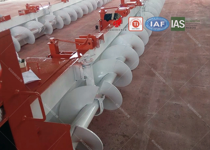 清仓机主要由入料仓、输送绞龙、输送管和出料口等部件组成,其工作原理为物料从入料口进入料仓,通过输送绞龙输送,绞龙上的叶片不断螺旋旋转,使物料与输送绞龙产生相对运动,即叶片产生推力推动物料移动,物料通过绞龙推动通过输送管从出料口排出或进入下一道工序,如在饲料加工过程中,原料仓就是通过清仓机把原料输送到电子称或者粉碎机。