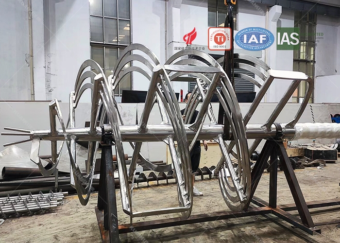 4、螺旋叶片部分为变螺距设计且螺旋叶片外形尺寸需要符合行业要求及重合度要求高,下料采用激光切割;