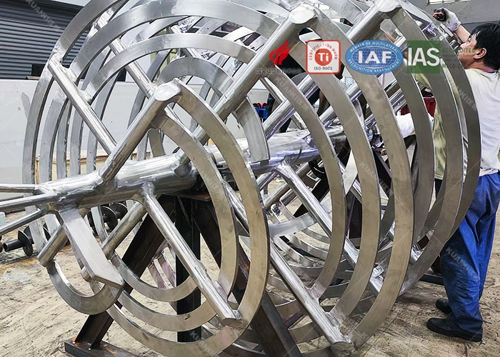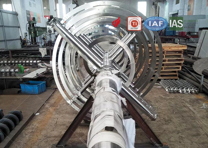 锂电搅拌、输送螺旋轴较多用在材料输送、材料搅拌、搅拌输送一体等,输送轴基本表面喷涂陶瓷或者碳化钨处理,搅拌螺旋轴阻力较大中心轴都以实心棒材为原料,焊接全部满焊,螺旋面做耐磨处理,搅拌输送一体轴,表面多数全部做耐磨处理。
